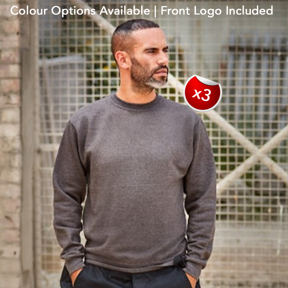Get 3 x Sweatshirts in the colour of your choice with left chest logo embroidery - you can add other embroidery areas at an additional cost.
