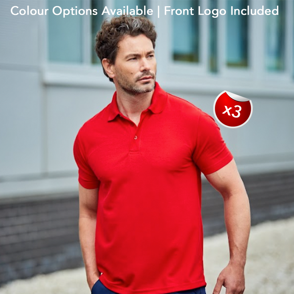 Get 3 x Polo Shirts in the colour of your choice with left chest logo embroidery - you can add other embroidery areas at an additional cost.