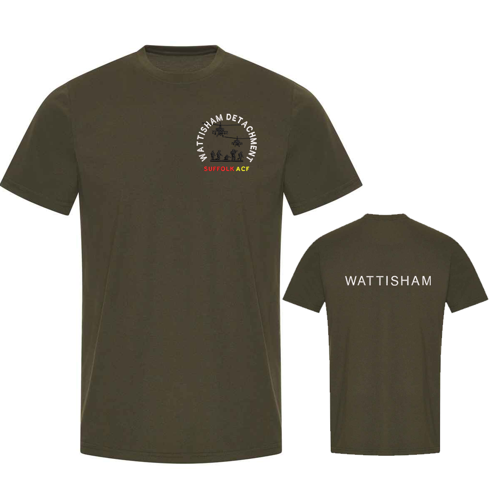 T-SHIRTS Khaki- With logo front left chest and "WATTISHAM" large across the back (as pictured)